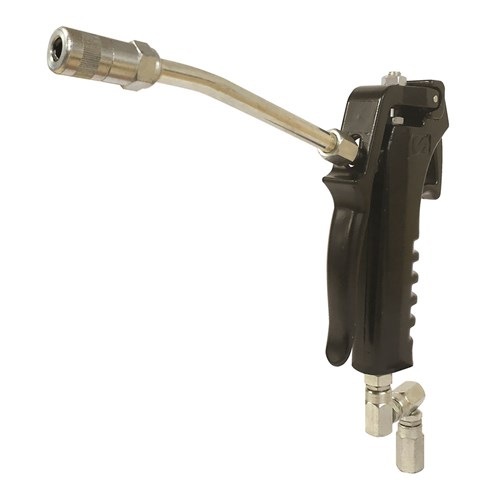 The 413080 Grease Control Valve with Z Swivel is precision engineered by Samoa in Spain and its ergonomic body and trigger are designed to reduce operator hand fatigue as it operates at genuine high pressure. Manufactured in aluminium with a steel insert, the maximum working pressure of 7,150psi (500bar) ensures efficient grease delivery during a long service life. Partially depress the trigger for a shot of grease and fully depress the trigger for a continuous flow. Supplied standard with a rigid outlet and 3 jaw coupler, the 413080 Grease Control Valve with Z Swivel available from Alemlube is a valuable and reliable tool for all your high pressure greasing applications.