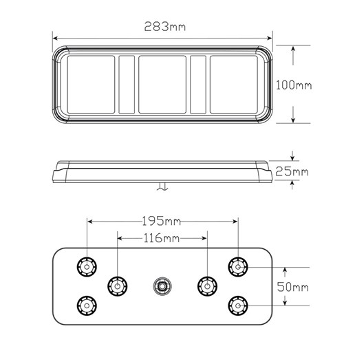 Screw or Bolt on Mount, Stop/Tail/Indicator Lamp with Inbuilt Reflectors, 12-24 Volt, 283mm x 100mm x 25mm, Blister, ADR Approved, 5 Year Warranty