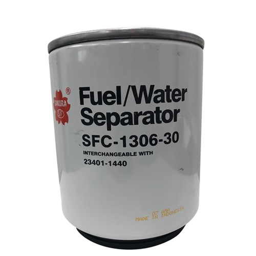 Sakura Primary Fuel Water Separator Filter, Spin-On- SFC-1306-30. Sakura Fuel/Water Separators remove the water component from fuel before it reaches you injection system. This prevents system failure. All products are tested to the 1S0/IEC 17025:2005 standard and accredited laboratory.