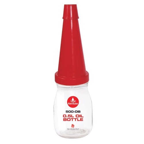 Alemlube Polyethylene oil pouring bottle complete with clear bottle, pouring spout and sealing lid ideal for those small oil top up jobs around the workshop or at the service station.