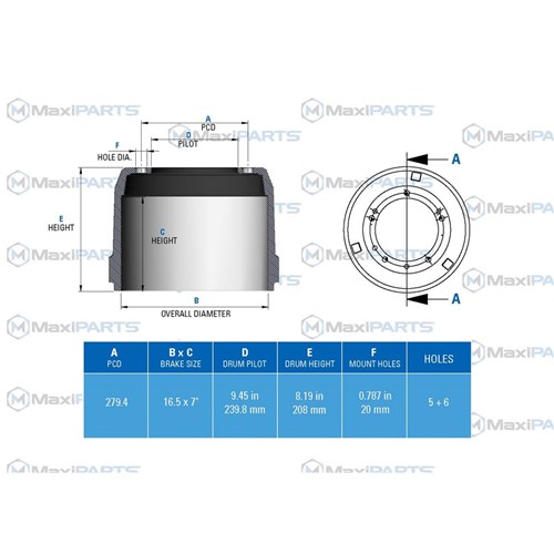 BRAKE DRUM DRIVE AXLE 5/6 SPOKE