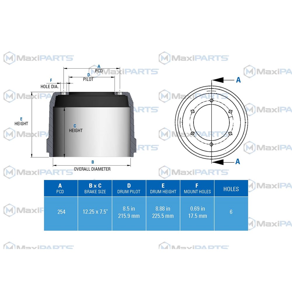 12-1/4" X 7-1/2" LOW LOADER BRAKE DRUM