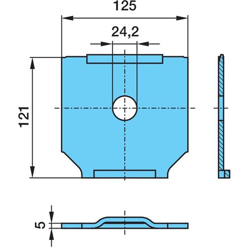 BPW Steel, Wearing Plate, Straight (parallel hanger) - Ø 24.2 / 121 x 125 x 5.