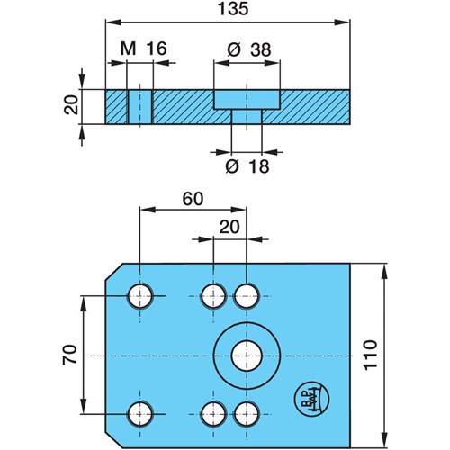 BPW Steel Base Plate to Suit BPW D30 & D30K - 110 x 135 x 20 / X 70 / V 0/20/60.