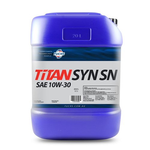 TITAN SYN SN SAE 10W-30 is a high performance, all season, fuel economy engine oil.  Designed for normally aspirated and turbocharged cars and vans with gasoline engines.