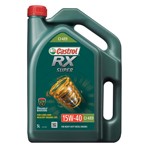 Castrol RX SUPER 15W-40 CJ-4/E9 with DuraShieldTM boosters provides a protective layer on the moving metal surfaces which resists break down even under difficult conditions.