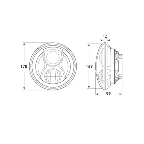 Combining the latest state of the art LED technology, multivoltage 12/24V DC circuit design and precision optics, the retrofit lamps provide outstanding visibility, safety, and durability – making them one of the most advanced 7” LED headlamps available. The tough die-cast aluminium housing is IP67 sealed against water and dust ingress with a UV resistant, hard coated polycarbonate lens making the HELLA’s 7" Round LED Headlamp range perfect for use on and off-road.