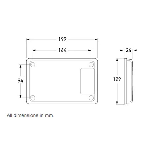 Jumbo-S LED reversing lamp with inbuilt 23cm² red retro reflector. Low profile design allows surface mounting with no additional housing.