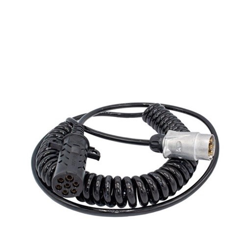 Hella long tail 7 pin electric suzi coil. ISO to SAE plug. Extremely resistant to high and low temperatures as well as weathering. Maximum resistance to oils and chemicals. Made to withstand repeated bending.