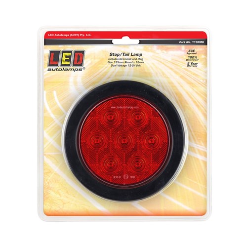 LED AUTOLAMPS 113 SERIES RED ROUND REAR INDICATOR LAMP WITH GROMMET & PLUG