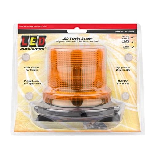 LED AUTOLAMPS AMBER STROBE BEACON MAGNETIC MOUNT IP67