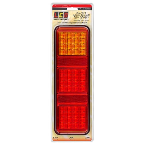Screw or Bolt on Mount, Stop/Tail/Indicator Lamp with Inbuilt Reflectors, 12-24 Volt, 283mm x 100mm x 25mm, Blister, ADR Approved, 5 Year Warranty