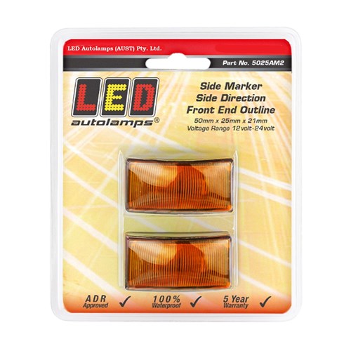 LED AUTOLAMPS 5025 SERIES AMBER SIDE MARKER/SIDE DIRECTION/FRONT OUTLINE LAMP - TWIN BLISTER