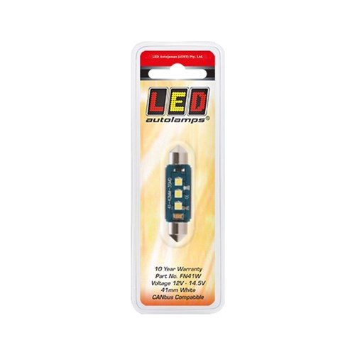 41MM WHITE FESTOON BULB, 12 VOLT, 180 Effective Lumen, CANBUS Compatible, Blister, 10 Year Warranty