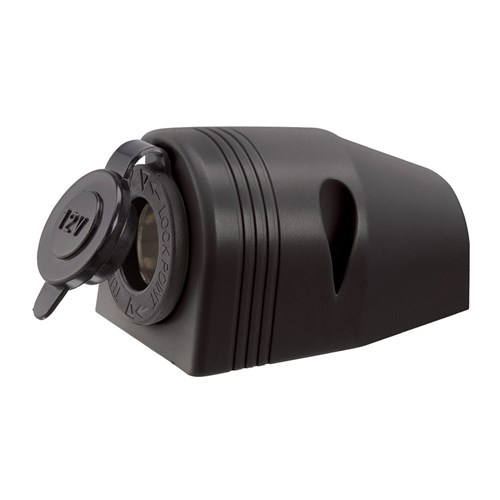 Features dustproof cover and stylish surface mount plastic housing. Amp rating 20A at 12V, 10A at 24V