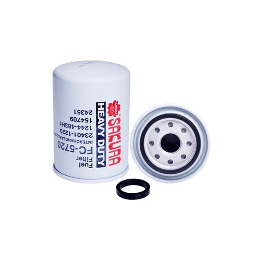Sakura Full Flow Spin-On Fuel Filter- FC-5720. Sakura Fuel Filters eliminate fine contaminants from entering fuel injections systems, keeping them clean and overall costs down. All products are tested to the 1S0/IEC 17025:2005 standard and accredited laboratory.