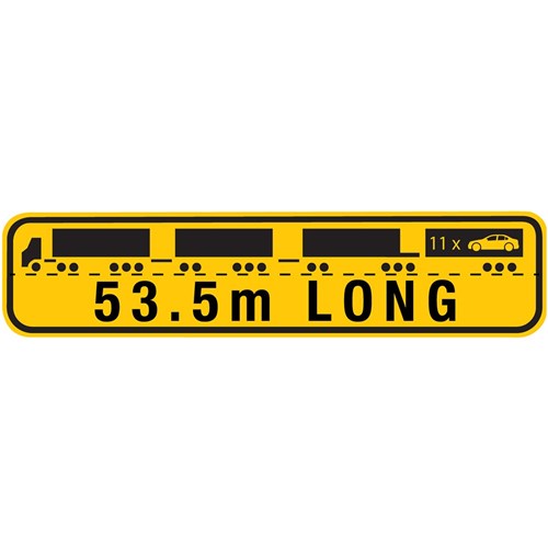 Road Trains >36.5 metres in length and ≤53.5 metres in length, must display the following sign on the rear of the combination.