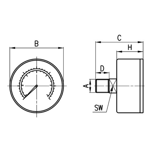 M043-P12 Pressure gauges with rear connection. Precision class CL1,6.