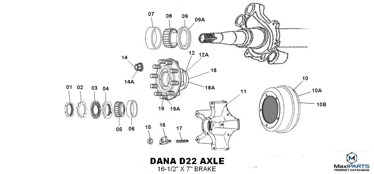 DANA D22 AXLE (SUIT 16-1/2" X 7" BRAKE)